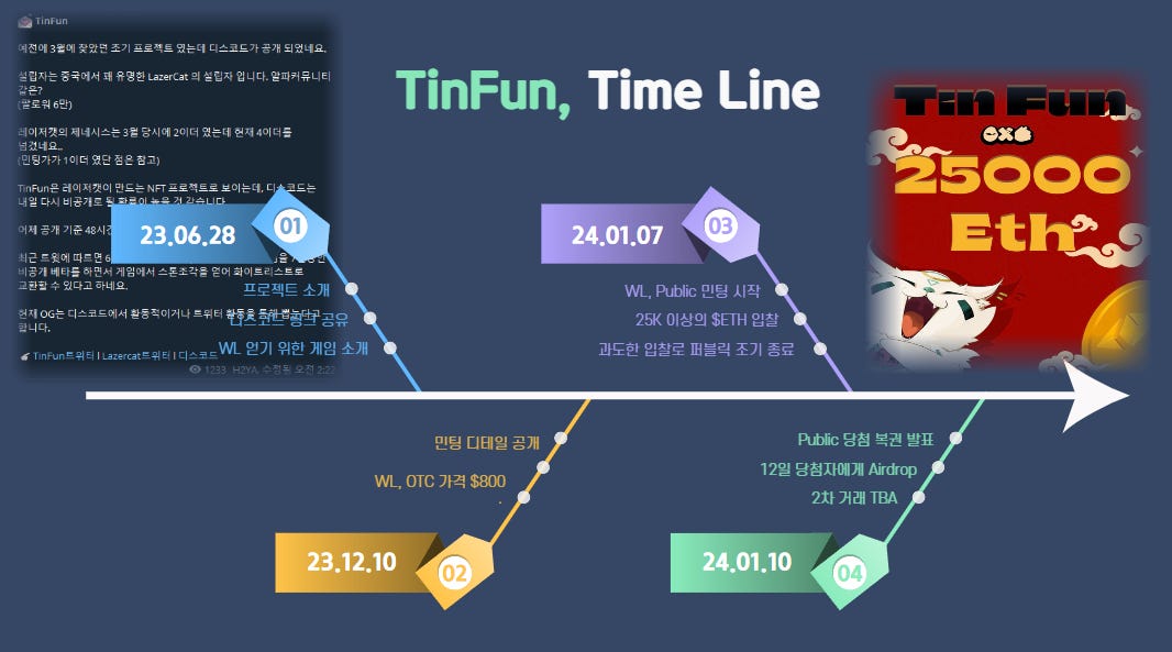 TinFun NFT 는 제가 작년 6월 텔레그램을 통해 공지 하였으며, 48시간 동안 공개되는 디스코드 입장과 화이트리스트를 얻을 수 있는 가이드라인을 제공 했습니다.